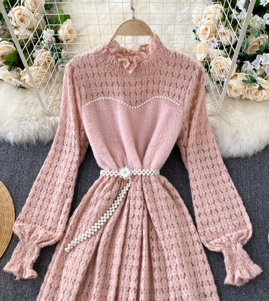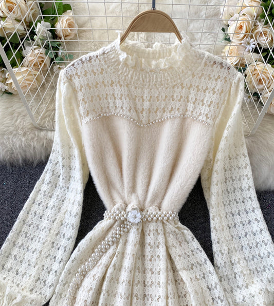 A line long sleeve lace sweater dress 198