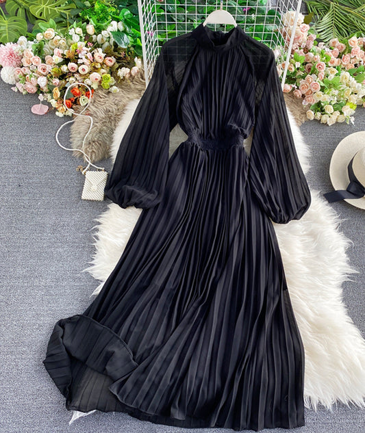 A line round neck long sleeve dress 964