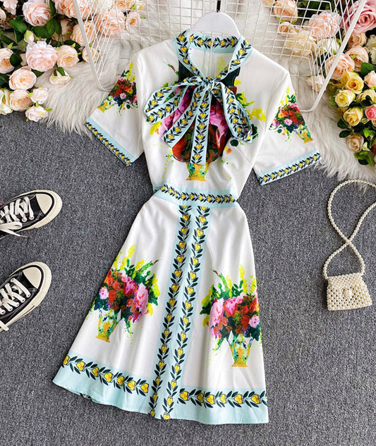 A line printed long dress women's dress 1334