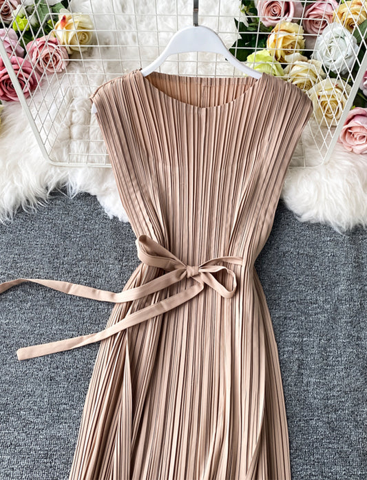 A line sleeveless pleated dress women's dress 1170