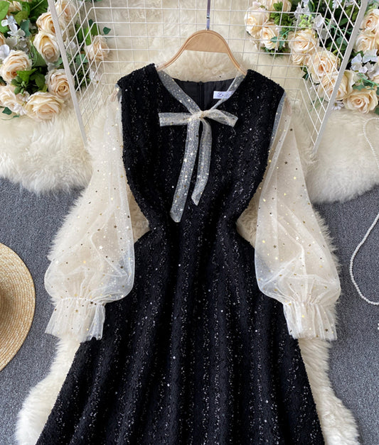 A line sequins long sleeve dress 889