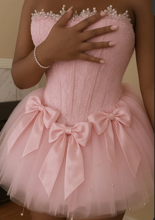 girlhomeshops--Homecoming Dress Pink Short Lace Short Girls Dress Seventh Grade Dress gh5665
