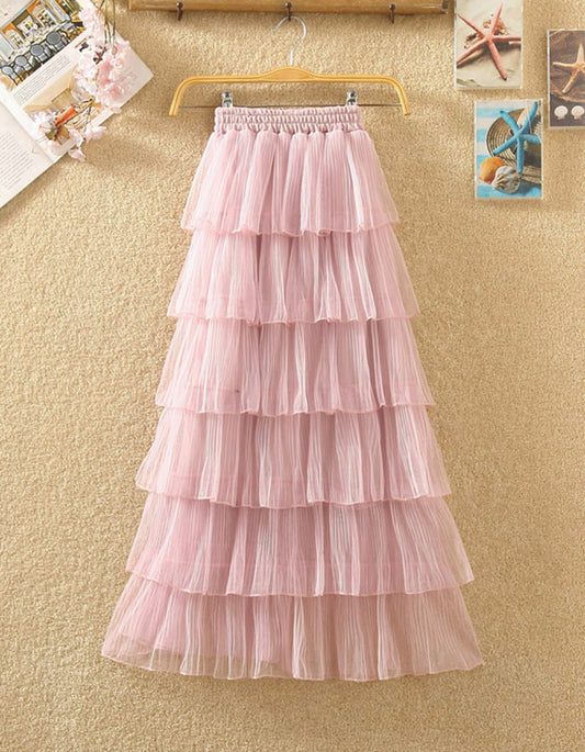 Big swing bouffant ankle-length skirt, high waist slim fairy skirt, net gauze skirt A-line skirt 3690