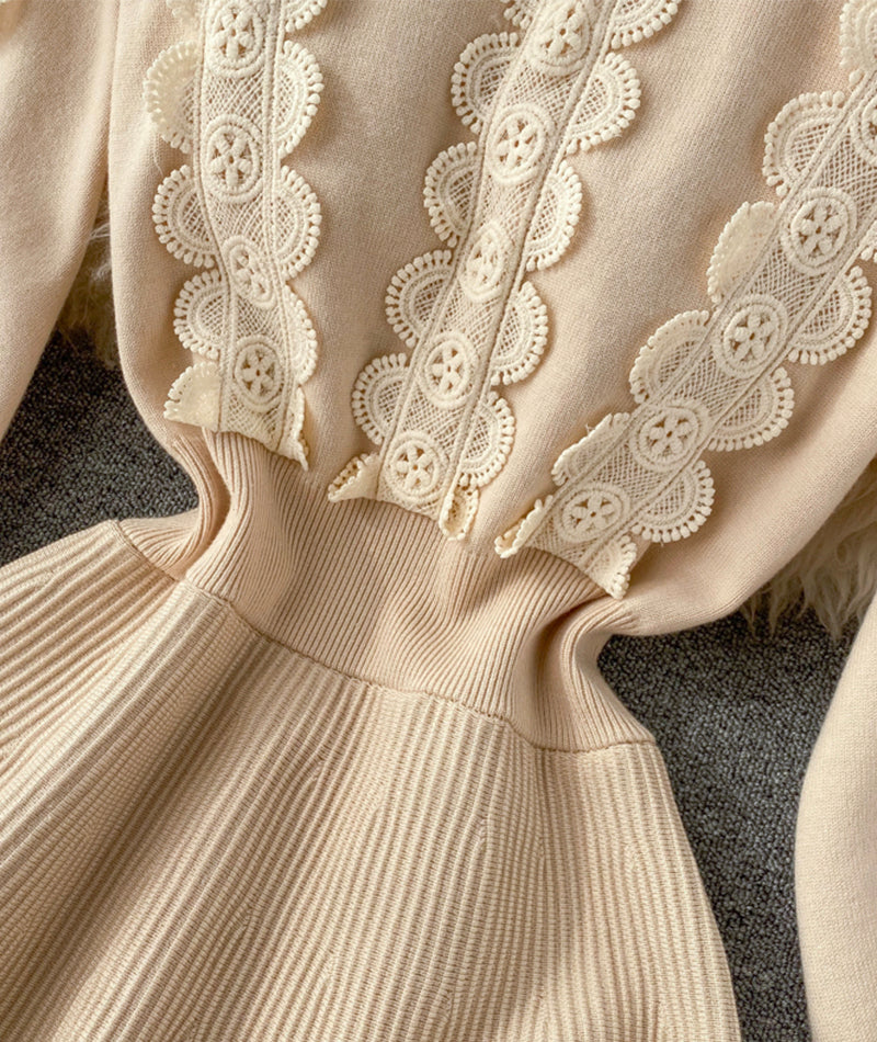 A line long sleeve lace sweater dress