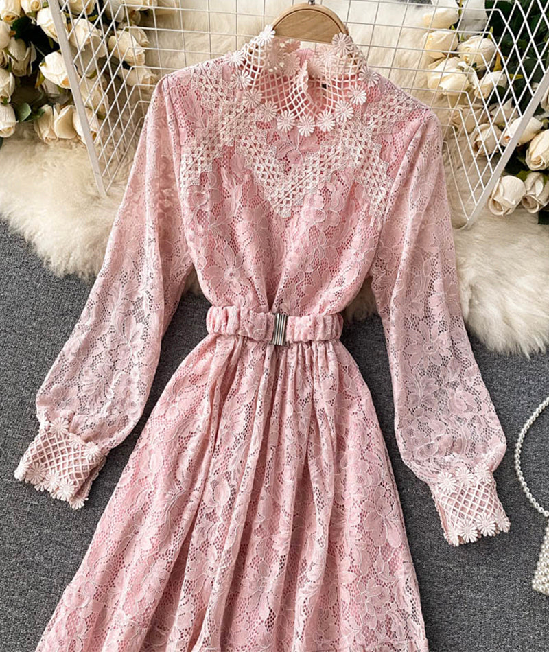 Elegant O-neck lace long sleeve dress