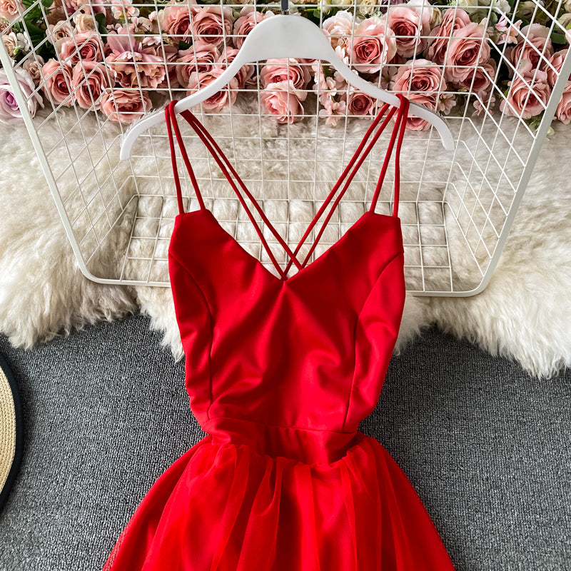 High waist mesh stitched fairy suspender skirt 3310