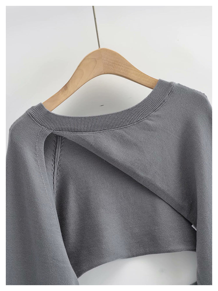 Irregular knitwear hollowed out design temperament versatile overlay blouse 7300