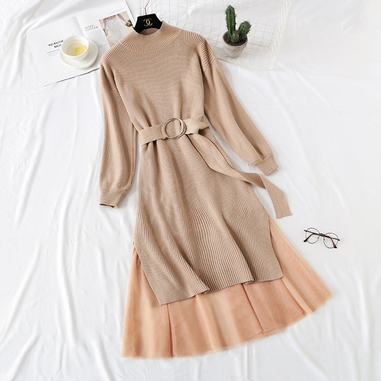 Knitted dress, women's French retro skirt, fashion suit, waist closing, thin temperament 2291