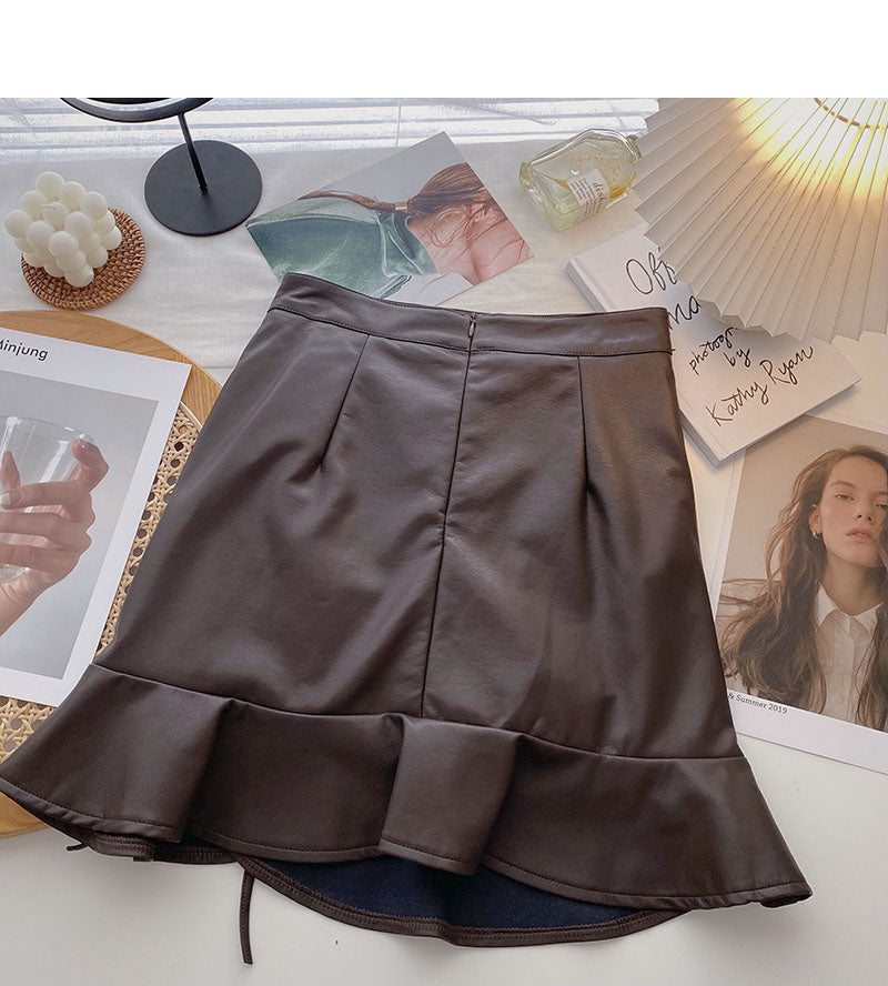 Korean high waist A-shaped design sense fashion drawstring hip wrapped fishtail skirt 5427