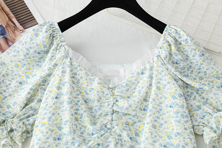 Line shoulder square neck bubble sleeve waist narrow skirt 3738