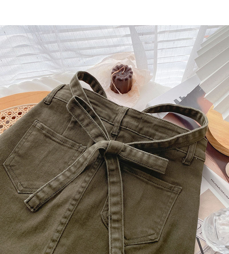 New Korean version versatile personalized bandage high waist A-line skirt 5524